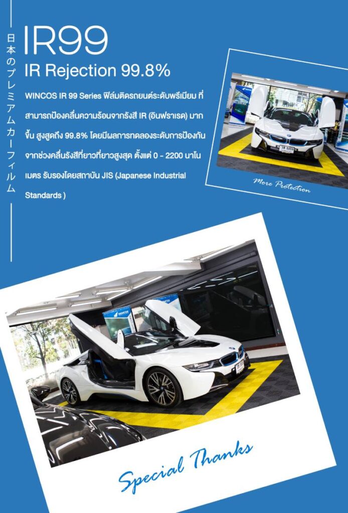 WINCOS Premium Series Nano-IR Tehnology Film ฟิล์มกรองแสงกันร้อนระดับสูงสุดจาก WINCOS ประเทศญี่ปุ่น ฟิล์ม WINCOS สามารถป้องกันความร้อนจากรังสีอินฟาเรดสูงสุด 97% และรังสี UV ได้มากกว่า 99%++